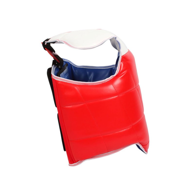 Soft but durable vinyl covers. The high-density foam for maximum protection on this chest guard. There are full blue and red scoring zones on either side and is designed with a drawstring tie for a secure fit. The protection cover extends over the collarbone and shoulders.