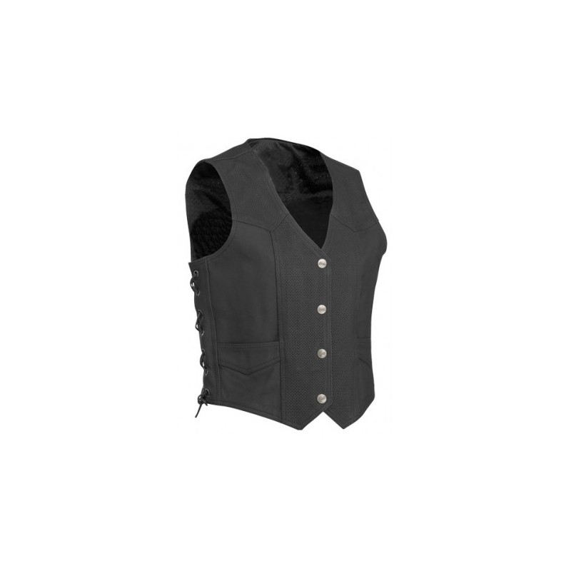 Made of Cowhide Leather, four Button On Front, front Ventilation Leather Panels, adjustable Side Laces. Two Front Pocket, two Inner Pocket, polyester Mesh Lining.