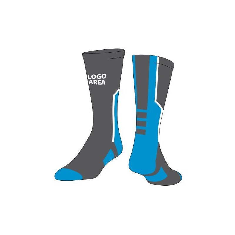We can design custom made socks in your colours and include logos, text and/or stripes as the design is knitted into the sock. Why not create a new look for your team? There is no need for old style club socks with just your club name in the top band. Our Custom Sports Socks are designed for maximum style, comfort & fit and come in a range of lengths and all sizes are available.